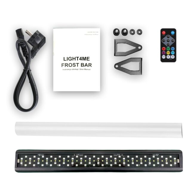 Listwa oświetleniowa LED DMX 72x0,3W RGB SMD 5050 + 36x0,3W W SMD 5050 zdejmowany dyfuzor pilot bezprzewodowy na podczerwień 2x uchwyt montażowy - LIGHT4ME FROST BAR | RATY | SALA ODSŁUCHOWA POZNAŃ