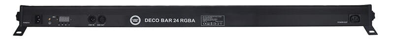Listwa LED Light4Me Deco Bar wyposażona została w 24 mocne, 3-watowe diody (po 3 w 8 sekcjach), operujące światłem w palecie barw RGBA (czerwony, zielony, niebieski i amber). Efekt gradientu barw RGBA, makro gradientu barw oraz stroboskop z regulowaną prędkością sprawiają, że użytkownik może łatwo uruchomić gotowe, spektakularne efekty wizualne ✅. Urządzenie posiada pełnozakresowy dimmer, co umożliwia precyzyjne dostosowanie jasności do potrzeb pokazu świetlnego ✅. Light4Me Deco Bar to sprzęt o klasie IP20, co oznacza, że jest zabezpieczony przed wnikaniem do niego stałych ciał obcych o średnicy 12,5 mm i większej. Dzięki siedmiu trybom DMX personalizacja kreowanych efektów świetlnych jest niemal nieograniczona. Wytrzymała, elegancka, czarna obudowa sprawia, że urządzenie nie rzuca się w oczy i łatwo wkomponowuje się w każde miejsce. Na tylnym panelu znajdują się gniazda zasilania IEC (w tym tzw. „podaj dalej” umożliwiające przekazywanie napięcia bezpośrednio z urządzenia do urządzenia), wejście i wyjście DMX służące do integracji z istniejącą instalacją oświetleniową oraz intuicyjny panel sterowania z cyfrowym wyświetlaczem i czterema przyciskami. Za ich pomocą możemy zmieniać ustawienia w menu, a także wybrać jeden z pięciu interesujących nas ✅ trybów pracy: