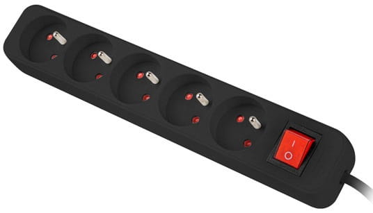 Listwa zasilająca 3m, czarna, 5 gniazd, z wyłącznikiem - Lanberg Z26373 (PS1-05E-0300-BK)