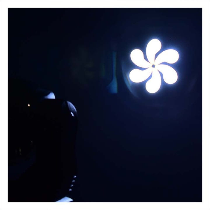 - tuż przed diodą zainstalowane zostały 4-ramienny pryzmat, tarcza siedmiu kolorów oraz statyczna tarcza gobo, na której mieści się 7 nowoczesnych wzorów modelujących wiązkę światła