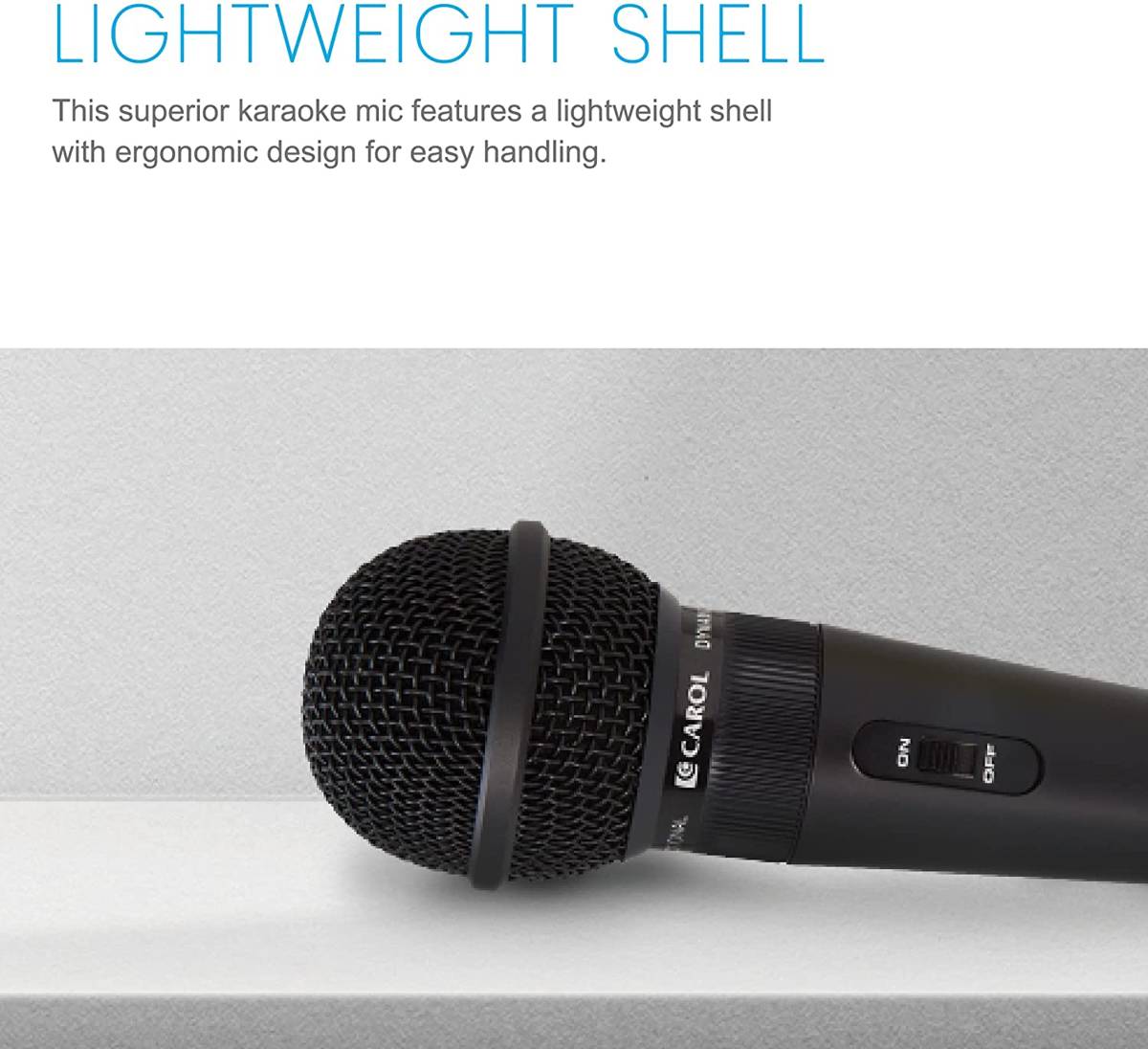 - Jednokierunkowy i kardioidalny mikrofon dynamiczny: Przewodowy mikrofon dynamiczny CAROL charakteryzuje się kardioidalną charakterystyką odbioru, zapewniającą większe wzmocnienie przy jednoczesnej minimalizacji sprzężeń tła. Idealny do urządzenia do karaoke, występów scenicznych, ślubu, kościoła, wywiadu itp.