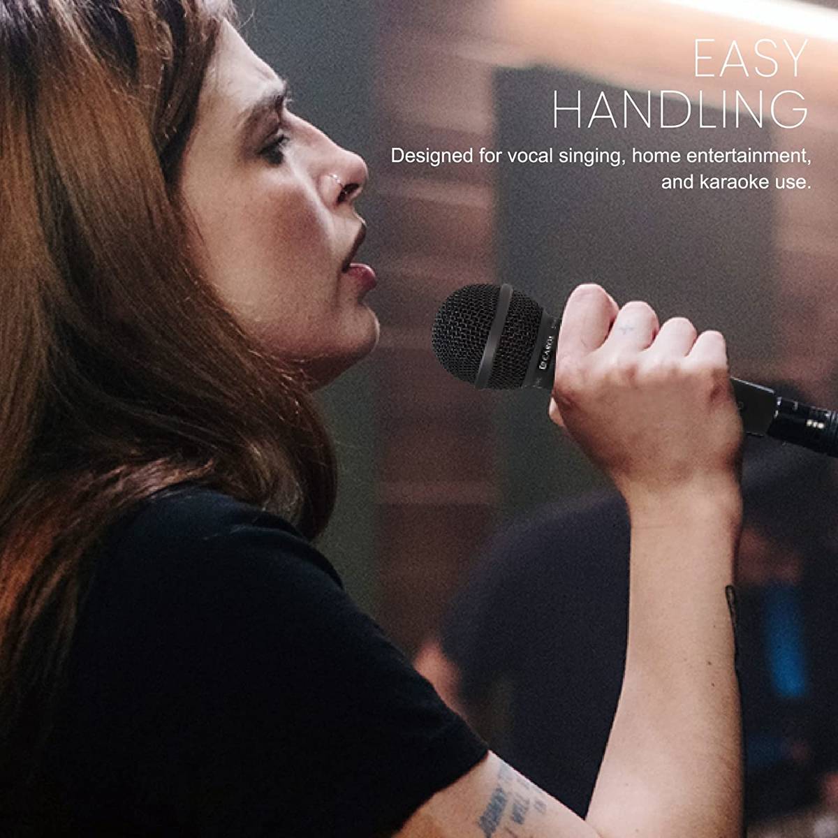 - Długi przewód XLR: wyposażony w przewód o długości 4,5 m zapewniający duży zakres ruchu; brak już odwracania uwagi od ograniczonej długości przewodu; Kompatybilny z urządzeniem do karaoke, wzmacniaczem, mikserem, systemem PA i głośnikiem. Umożliwia bezpośrednie wykorzystanie mikrofonu karaoke do głośnika, wzmacniacza lub miksera. Doskonała konstrukcja kabla mikrofonowego może izolować zewnętrzne zakłócenia elektromagnetyczne i sprawiać, że transmisja dźwięku jest wyraźniejsza.