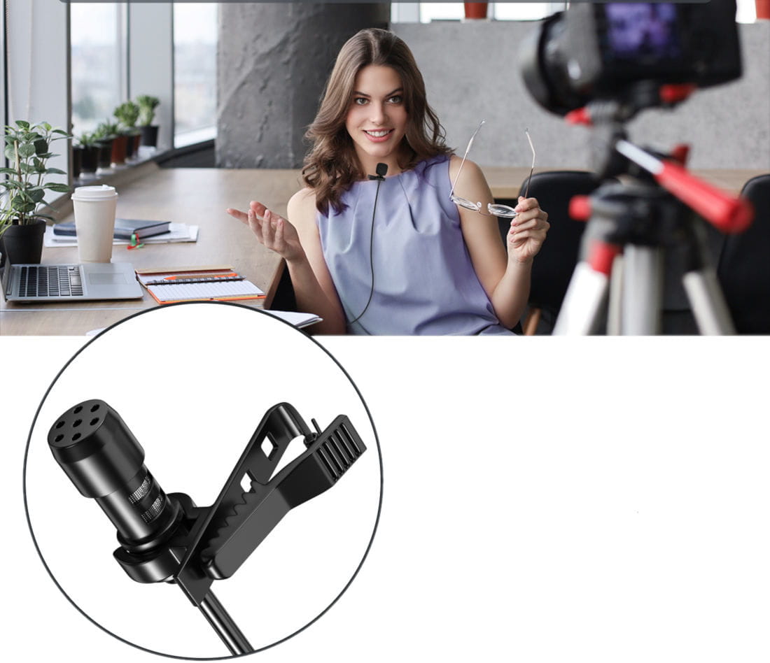 - uniwersalny mikrofon krawatowy do urządzeń jack 3.5mm np. telefon, laptop, komputer stacjonarny