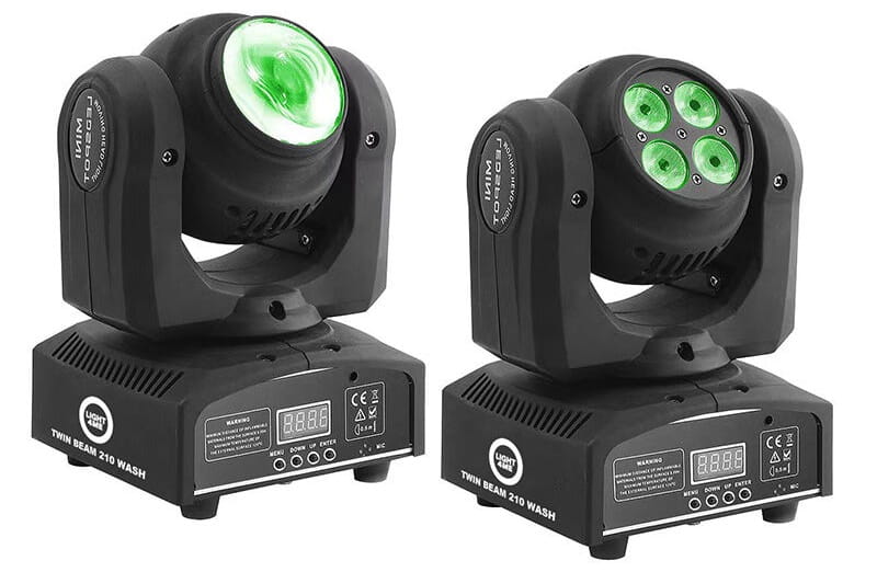LIGHT4ME TWIN BEAM 210 WASH to niewielka, lekka i bardzo efektowna, dwustronna mini głowica ruchoma led beam-wash, wyposażona z jednej strony w mocną, 15-watową diodę LED RGBW z soczewką beam, z drugiej zaś cztery 10-watowe diody LED RGBW typu wash. Obie wiązki emitowane są w przeciwnych kierunkach. Dużą zaletą Twin Beama jest również możliwość nieograniczonej rotacji źródła światła w osi pionowej. Dzięki temu ten głowica tworzy dynamiczne oświetlenie, które doskonale sprawdza się w klubach tanecznych, jako oświetlenie dyskotekowe, na niewielkich scenach muzycznych, w trakcie studniówek, 18-nastek, na prywatkach, a także w mobilnej pracy DJ-ów.