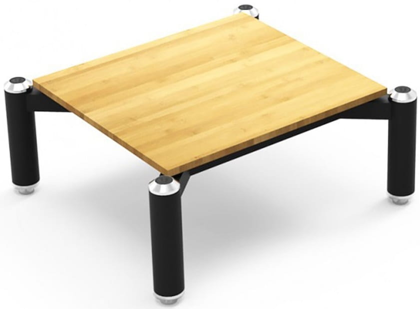 - czarne metalowe podstawy i grube (15mm) czarne szklane lub bambusowe półki wraz z rozwiązaniem tłumienia drgań