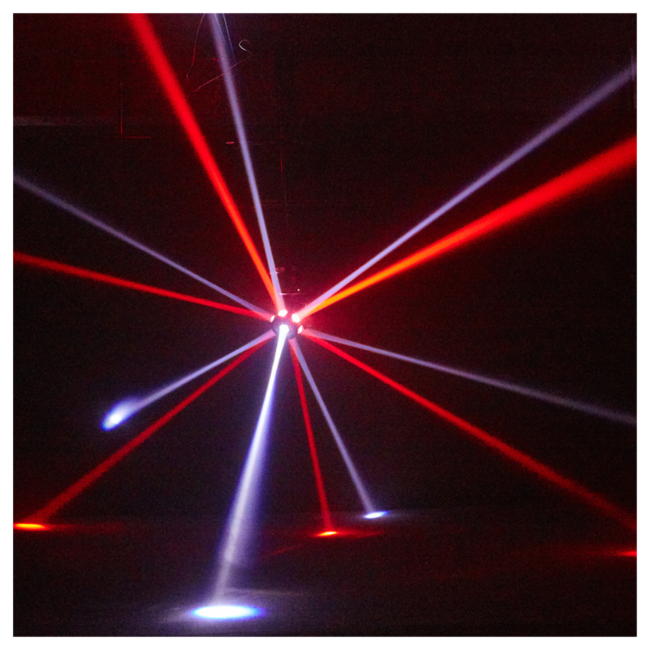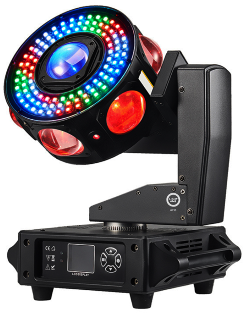 | Źródło światła | efekt beam: 28x3W RGBW LED efekt ring: 108x0,3W RGB 5050 LED laser czerwony: 50 mW laser zielony: 50 mW laser niebieski: 50 mW efekt białego stroboskopu: 3x10W biała LED |