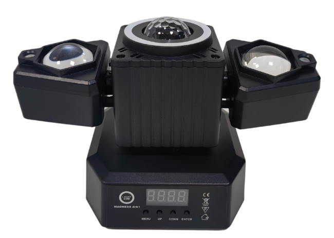 Light4Me Madness 4in1 dostosuje się do Twojego stylu pracy, dzięki licznym opcjom sterowania - poprzez protokołowi DMX, pilotowi bezprzewodowemu na podczerwień, pracy automatycznej lub obsłudze ręcznej z wykorzystaniem wyświetlacza LED z czterema przyciskami, który umożliwia szybkie i intuicyjne zarządzanie pracą urządzenia ✨. Opcja resetu, zmiana orientacji wyświetlacza oraz kontrola jego podświetlenia to dodatki, które docenisz w codziennej pracy ✅.