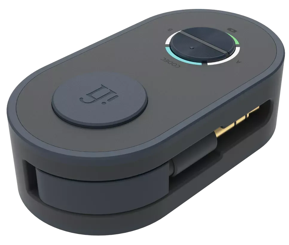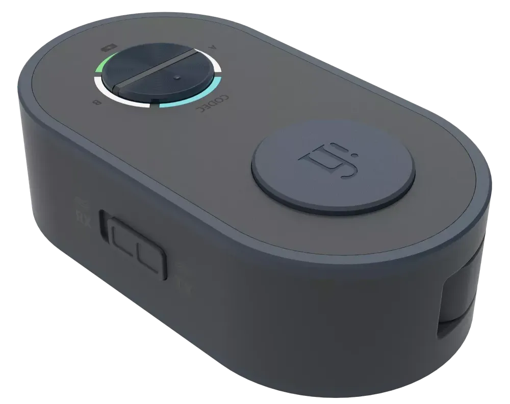| Łączność | Tryb TX (nadajnik): wejście AUX 3.5 mm; wejście/wyjście USB-C; wyjście Bluetooth 5.2 Tryb RX (odbiornik): wejście Bluetooth 5.2, USB-C; wyjście AUX 3.5 mm |