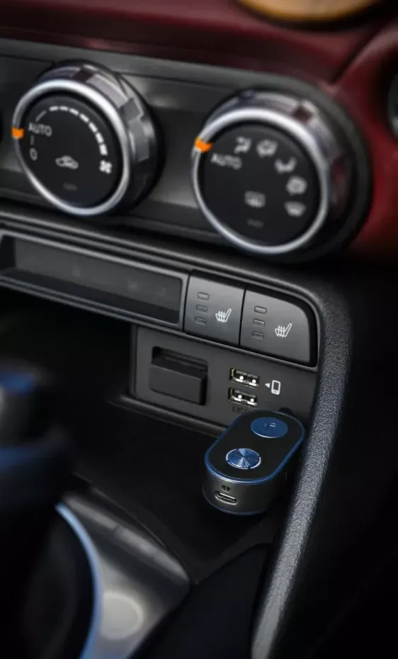- W samochodzie: przełączasz tryb i podłączasz go do wejścia AUX, aby w prosty sposób zmodernizować system stereo do dźwięku HD Bluetooth.