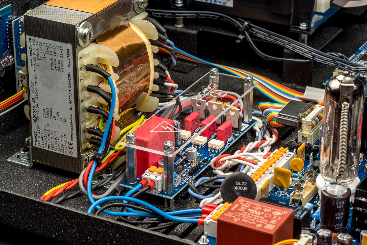 Transformator toroidalny jest przewymiarowany i charakteryzuje się niskim promieniowaniem pola magnetycznego i zapewnia czystą energię bez zakłóceń do zasilenia CD 1.10.