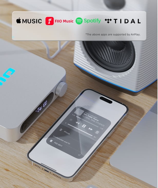Połącz z iPhonem, iPadem, MacBookiem, iMacem lub Mac mini i przesyłaj strumieniowo do SR11 za pomocą AirPlay, aby cieszyć się płynnym i wygodnym słuchaniem.