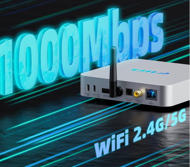 Port Ethernet obsługuje prędkości do 1000 Mb/s w sieciach przewodowych, zapewniając szybką i stabilną transmisję danych. Moduł Wi-Fi AP6256 obsługuje zarówno dwuzakresowe sieci bezprzewodowe 2,4 GHz, jak i 5 GHz, co pomaga zapewnić stabilną bezprzewodową transmisję dźwięku bezstratnego.