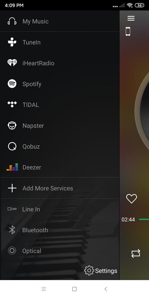 | Obsługiwane usługi muzyczne | iTunes, Spotify, TuneIN, Qobuz, Tidal |