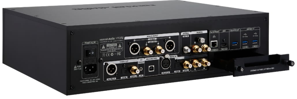 Cocktail Audio X45 PRO to odtwarzacz strumieniowy wyposażony w przetwornik cyfrowo - analogowy DAC ESS SABRE ES9038PRO. Urządzenie pozwala na zgrywanie płyt CD oraz przechowywanie ulubionych utworów. Konstrukcja urządzenia została oparta o procesor Quad Core ARM Cortex A9. X45 PRO obsługuje pliki MQA, DSD512 oraz PCM 768Khz/32Bit. Cocktail Audio jest kompatybilny z takimi serwisami strumieniującymi jak Spotify, Tidal, Deezer, Qobuz czy Napster. Dzięki wyposażeniu w 2.5/3.5 calową kieszeń na dysk HDD lub SDD możemy rozszerzyć pamięć urządzenia do 8TB.