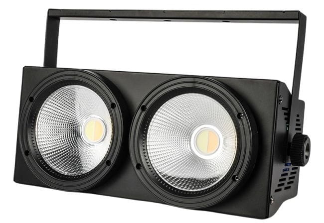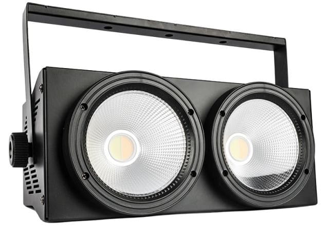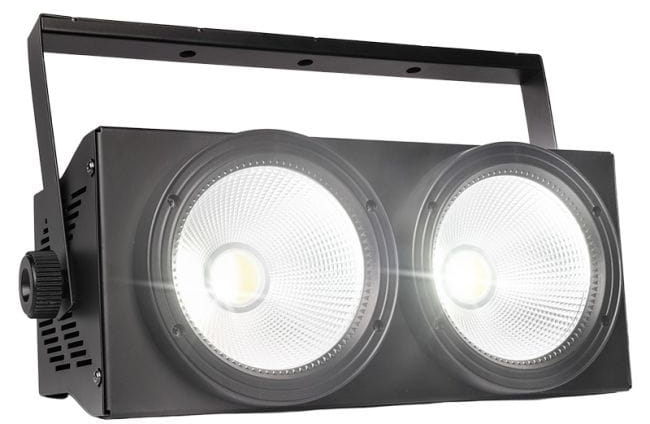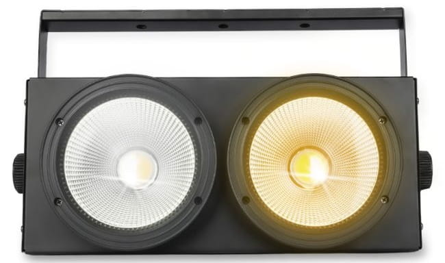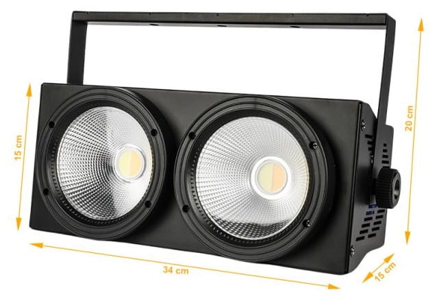 Light4Me 2Lite Blinder to profesjonalne oświetlenie wyposażone w dwie potężne diody LED o mocy 125 watów każda, operujące białym światłem, którego intensywność dodatkowo wzmacniają efektywne odbłyśniki. Temperatura barwowa bieli jest konfigurowalna w zakresie od ✅ ciepłej do zimnej. Obie diody mogą działać niezależnie, umożliwiając ciągłe lub naprzemienne świecenie i dynamiczne efekty stroboskopowe. Za pomocą liniowego dimmera użytkownik ma pełną kontrolę nad intensywnością emitowanego światła, zapewniając płynne dostosowanie do potrzeb scenicznych.