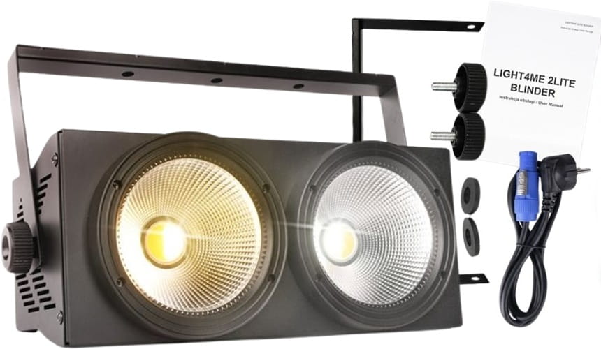 | W zestawie | oświetlacz estradowy Light4Me 2Lite Blinder, uchwyt i elementy montażowe, przewód zasilania (powercon), instrukcja obsługi (EN/PL) |
