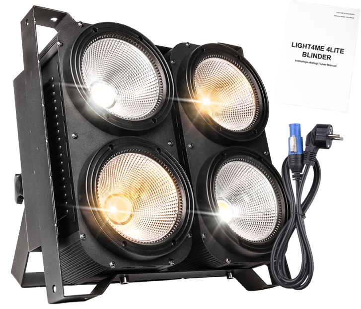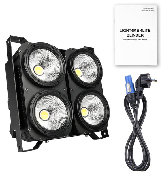 | W zestawie | oświetlacz estradowy Light4Me 4Lite Blinder, uchwyt i elementy montażowe, przewód zasilania (powercon), instrukcja obsługi (EN/PL) |