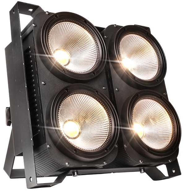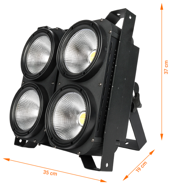 Light4Me 4Lite Blinder to profesjonalne oświetlenie wyposażone w cztery potężne diody LED o mocy 125 watów każda, operujące białym światłem, którego intensywność dodatkowo wzmacniają efektywne odbłyśniki. Temperatura barwowa bieli jest konfigurowalna w zakresie od ✅ ciepłej do zimnej. Obie diody mogą działać niezależnie, umożliwiając ciągłe lub naprzemienne świecenie i dynamiczne efekty stroboskopowe. Za pomocą liniowego dimmera użytkownik ma pełną kontrolę nad intensywnością emitowanego światła, zapewniając płynne dostosowanie do potrzeb scenicznych.