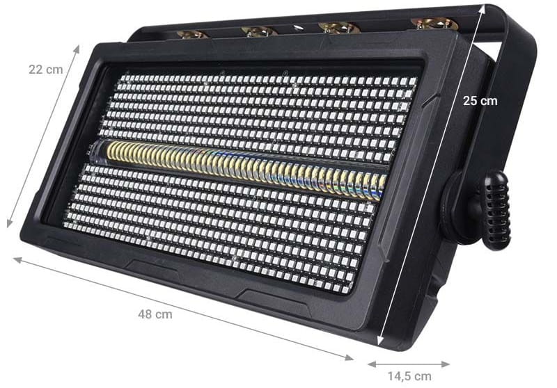 - profesjonalny zewnętrzny wall washer wyposażony w 16-sekcyjny układ diod operujący światłem w palecie RGB oraz 8-sekcyjny system emitujący światło białe