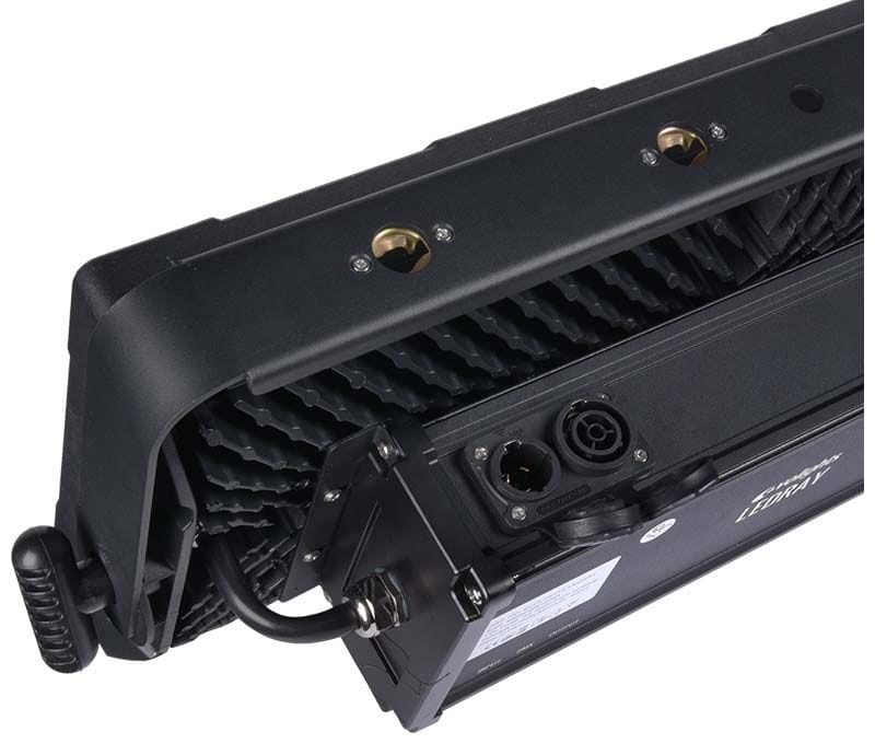 Wall washer Evolights Ledray, dzięki zastosowaniu dwóch wielosekcyjnych układów diod LED pozwala tworzyć ciekawe, wielobarwne efekty świetlne i aktywną scenografię. Specjalne zabezpieczenia oraz odporność na pył i strugi deszczu, sprawiają, że śmiało może być stosowany na otwartych scenach nawet podczas załamania pogody. Dodatkowo funkcja RDM pozwala na zdalne zarządzanie ustawieniami jednostki. To bardzo przydatne szczególnie wtedy, gdy jest ona zainstalowana w trudno dostępnych miejscach, takich jak kratownice sceniczne i rampy oświetleniowe. Wysokie bezpieczeństwo podczas pracy gwarantuje także solidny uchwyt montażowy.