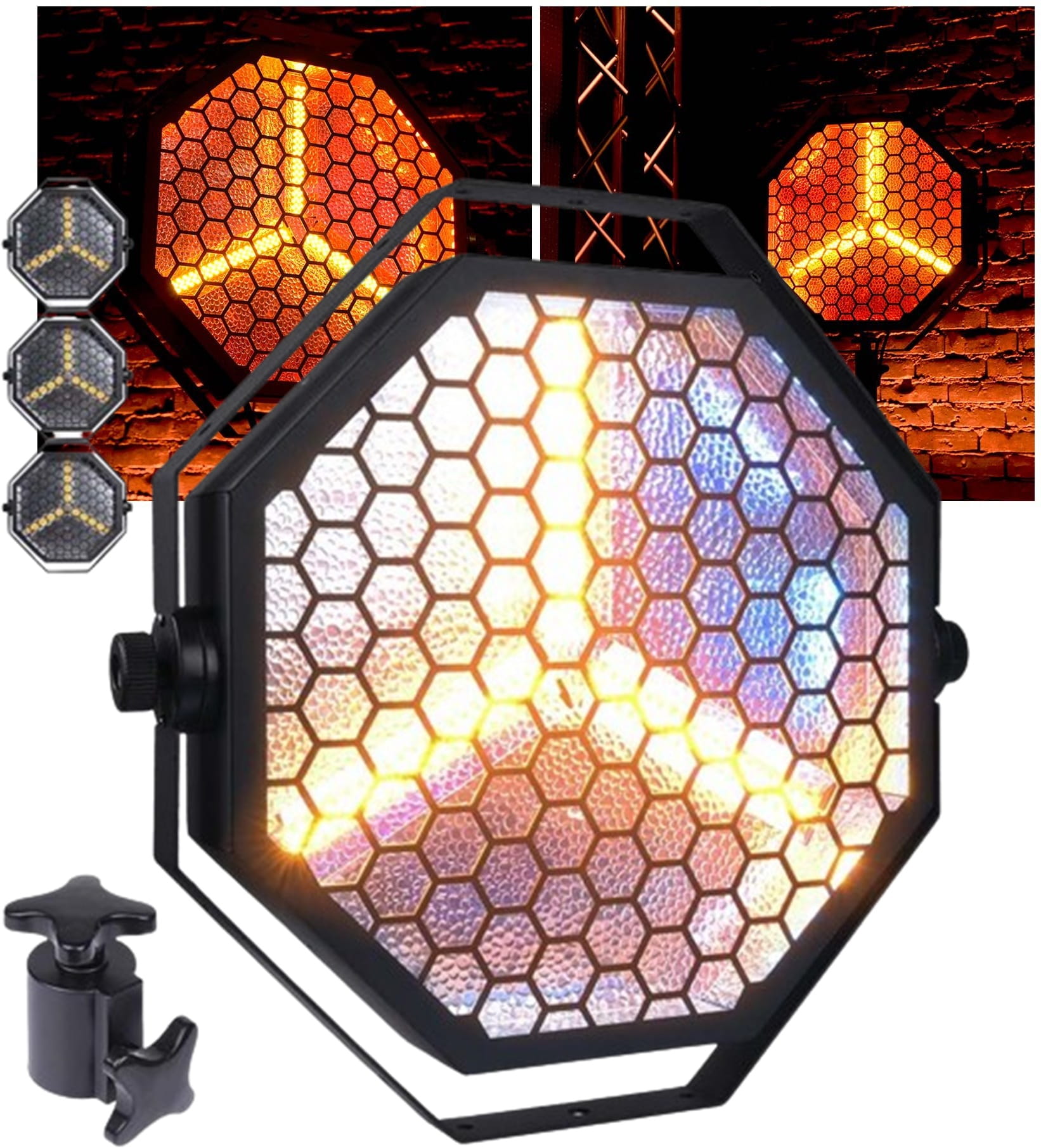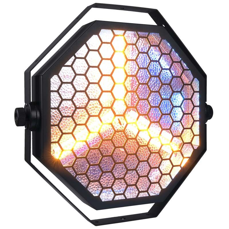 Evolights Lumeno posiada stylową obudowę z efektowną kratownicą o strukturze plastra miodu, która bardzo dobrze prezentuje się na scenie. Reflektor jest nowoczesny, a jednocześnie nawiązuje do klasycznych wzorców sprzed kilku dekad. Solidna obudowa wyposażona została w uchwyt montażowy umożliwiający instalację oświetlacza na statywach, kratownicach i rampach oświetleniowych. Z tyłu znajduje się wygodny panel sterowania z czytelnym wyświetlaczem LCD oraz 3-stykowe wejście i wyjście XLR dla łatwej kontroli w trybie DMX.