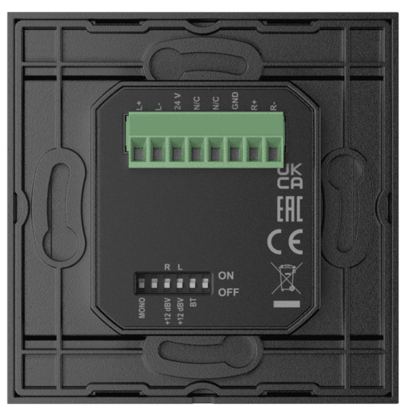 Bluetooth wbudowany w ten model panelu naściennego zapewnia możliwość łączności bezprzewodowej z jakimkolwiek urządzeniem obsługującym Bluetooth, a dioda LED znajdująca się na panelu informuje o obecnym statusie podłączenia.