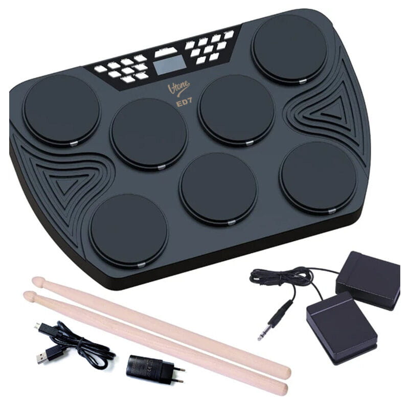 Perkusja elektroniczna przenośna USB-C Bluetooth 7 padów pedały pałeczki wbudowane głośniki zestaw perkusyjny - V-TONE ED7 | RATY 0% | SALA ODSŁUCHOWA POZNAŃ