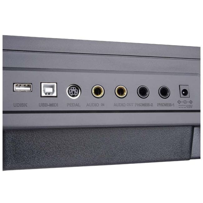 MK DP 881 to wysoka elastyczność połączeń z różnymi urządzeniami peryferyjnymi. Wejście audio umożliwia podłączenie do pianina telefonu, smartfona, laptopa, notebooka lub innych zewnętrznych odtwarzaczy dźwięku i odtwarzanie muzyki na głośnikach DP 881, a wyjście podłączenie instrumentu do miksera estradowego, aktywnej kolumny głośnikowej lub innego zewnętrznego nagłośnienia scenicznego. Sprzęt pozwala również na współpracę z komputerami osobistymi o oprogramowaniem muzycznym typu DAW dzięki złączu USB-MIDI.