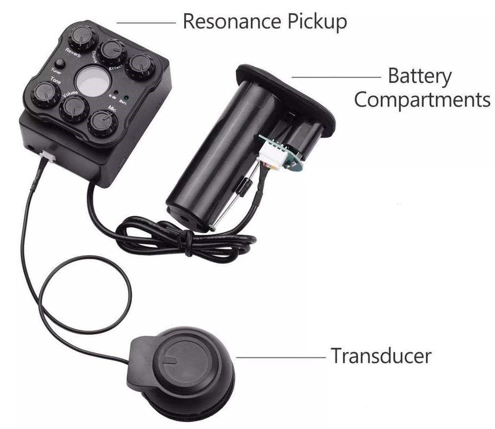 - Wydajność: Zaprojektowany z regulacją tonu i głośności dla dokładniejszego odbioru, zapewnia czystą jakość dźwięku i ma niskie sprzężenie zwrotne. Filcowy klips chroni gitarę przed zadrapaniami lub uszkodzeniami.