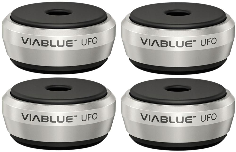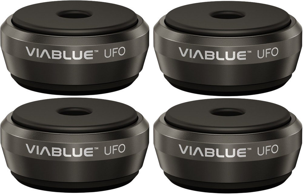 Pochłaniacze VIABLUE ™ UFO to eleganckie tłumiki drgań, które można umieścić bezpośrednio pod głośnikami lub urządzeniami. Ze względu na ich optymalny nacisk na leżące pod nimi przeszkadzające wibracje są wiązane i pochłaniane przez dwie membrany, innowacyjne softpady VIABLUE ™. W ten sposób pochłaniacze zapewniają żywy, czysty i szczegółowy dźwięk. Są optymalnym dodatkiem zarówno dla małych, jak i dużych głośników, a także urządzeń takich jak odtwarzacze płytowe lub wzmacniacze lampowe.