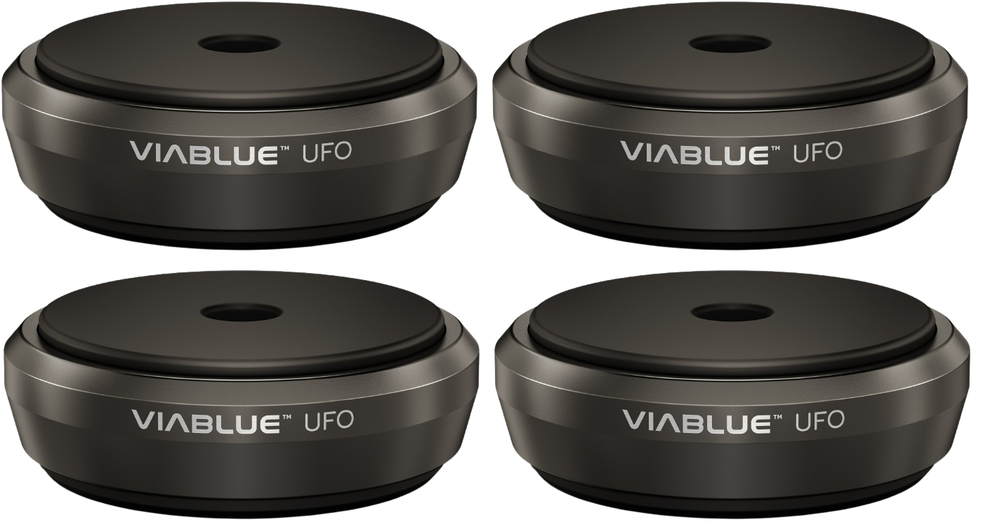 Amortyzatory VIABLUE ™ UFO XL to masywne tłumiki drgań, które można umieścić bezpośrednio pod głośnikami lub urządzeniami. Ze względu na ich optymalny nacisk na leżące pod nimi przeszkadzające wibracje są wiązane i pochłaniane przez dwie membrany, innowacyjne softpady VIABLUE ™. W ten sposób pochłaniacze zapewniają żywy, czysty i szczegółowy dźwięk. Są optymalnym dodatkiem do głośników na dużą skalę, a także urządzeń takich jak odtwarzacze płytowe lub wzmacniacze lampowe.