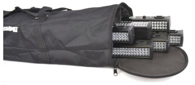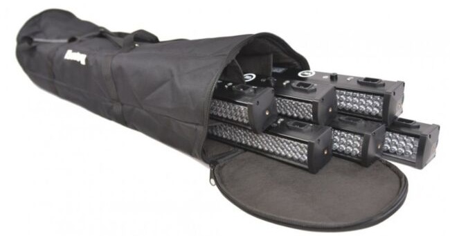 CASE4ME pokrowiec na 6 sztuk listew LED bar lub statywów mikrofonowych (o długości do 105 cm) – uniwersalna torba transportowa posiadająca 6 przegród, dzięki którym statywy lub listwy LED bar mogą być bezpiecznie i wygodnie transportowane. Całość pokrowca została wykonana z mocnego nylonu, natomiast jego wyściełanie z 10-milimetrowej gąbki technicznej. Torba jest zamykana na solidny zamek suwakowy, dzięki czemu Twój sprzęt pozostanie zabezpieczony nawet w najtrudniejszych warunkach atmosferycznych.