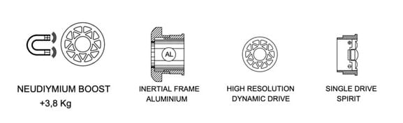 Spirit Torino Titano mają pojedynczy przetwornik z membraną ze specjalnie wybranego materiału, co umożliwia reprodukcję szerokiego pasma i wysoką rozdzielczość. Producent wykorzystał dodatkowo bardzo mocny magnes neodymowy, który gwarantuje rewelacyjną kontrolę dźwięku i wysoką dynamikę, oraz unikatową podstawę z maty tłumiącej Dynamat Xtreme, co niweluje niepożądany rezonans (mogący powstawać w wyniku odbijania się fal we wnętrzu komory przetwornika). To wszystko przekłada się na naturalny, gładki, ale szczegółowy dźwięk. Titano były do tego kalibrowane pod krzywe izofoniczne Fletchera-Munsona (krzywe jednakowej głośności) dla ludzkiego ucha, co gwarantuje liniowość dźwięku.