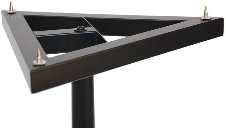 STAND4ME MON1 MKII to profesjonalne statywy pod monitory studyjne audio, które mogą być również wykorzystane jako stojaki pod niewielkie kolumny głośnikowe lub innego rodzaju sprzęt. Statywy monitorowe MON1 posiadają funkcję płynnej regulacji wysokości w zakresie od 66 cm do 116 cm oraz pinowe zabezpieczenie przed przypadkowym osunięciem sztycy. Umożliwia to bezpieczne i optymalne dostosowanie wysokości stojaków dla uzyskania jak najlepszego odsłuchu dźwięku. Solidna podstawa w kształcie trójkąta równobocznego bez problemu utrzyma monitory ważące nawet 15 kg. Górne podstawy statywów są kwadratowe. Posiadają specjalne paski z gumy piankowej pozwalające uniknąć zarysowań monitorów, tłumiące drgania rezonansowe i zabezpieczające przed przesuwaniem się monitorów w trakcie pracy. Dodatkowo statywy STAND4ME MON1 MKII posiadają gumowe stopki zamienne z metalowymi kolcami przewidzianymi dla dywanów i wykładzin. Dzięki nim można wypoziomować statyw tak, aby całość była stabilna i bezpieczna.