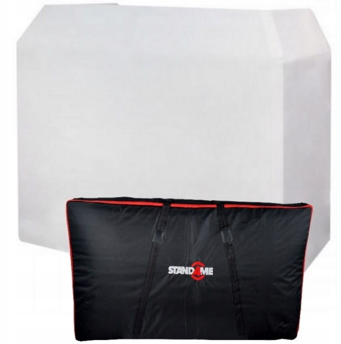 Stelaż rozkłada się w łatwy i szybki sposób. Jego blat wykonany został z 8-milimetrowej sklejki, która pomalowana została na kolor czarny. Po rozstawieniu sprzętu na blacie cały stand jest jeszcze bardziej stabilny. Dodatkowo pokrywa go lycrowy ekran – w zestawie mamy zasłony w kolorze czarnym i białym.