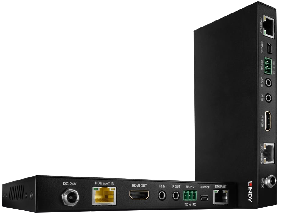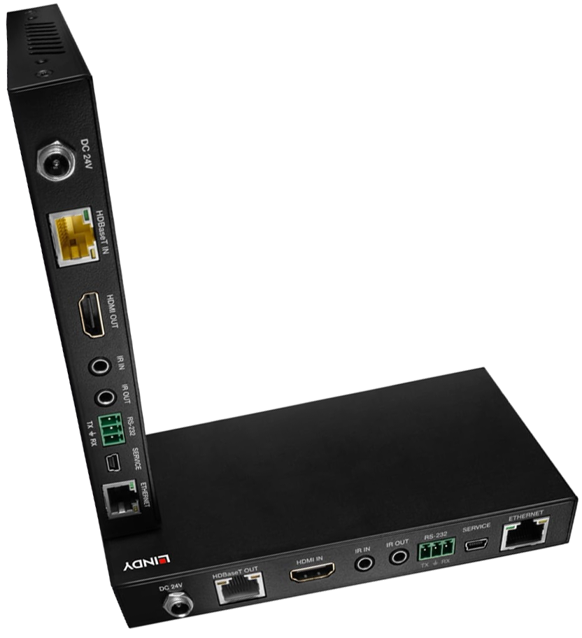 Przedłużacz obsługuje sygnały IR oraz RS-232 ułatwiające sterowanie oraz sieć LAN, przez wbudowany port Ethernet.
