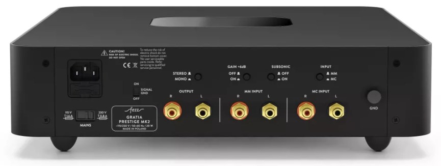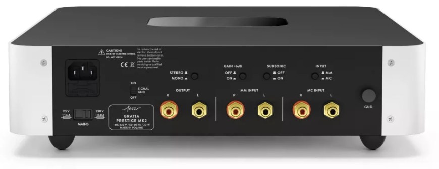Fezz Gratia Prestige MK2 to całkowicie przebudowana lampowa wersja przedwzmacniacza gramofonowego Gratia. Sekcja wzmocnienia sygnału oparta jest na dwóch niskoszumowych, selekcjonowanych lampach próżniowych 12AU7. Wersja Mark 2 została wyposażona w dodatkowe możliwości, w postaci doboru pojemności wejściowej dla wkładek MM oraz obciążenia dla wkładek MC. Umożliwia to jeszcze lepsze dopasowanie elementów toru analogowego.
