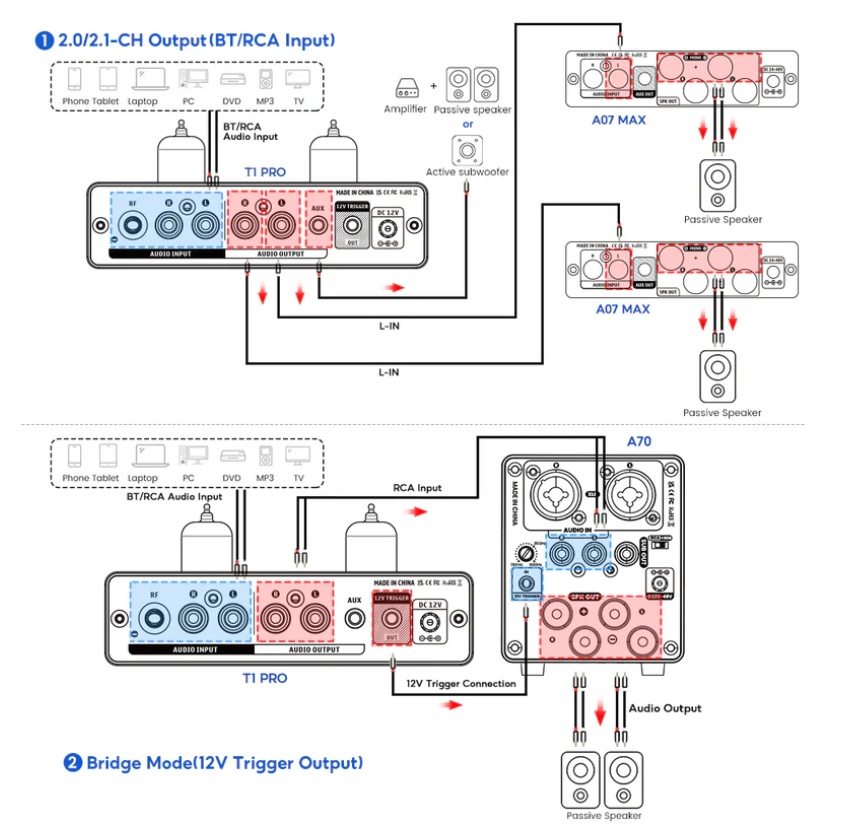 Zgodność z wieloma urządzeniami i szerokie zastosowanie: Obsługuje wiele trybów wejściowych, w tym RCA i Bluetooth, jest kompatybilny ze smartfonami, tabletami, komputerami, odtwarzaczami MP3, telewizorami i innymi urządzeniami, obsługując różne źródła dźwięku i środowiska.
