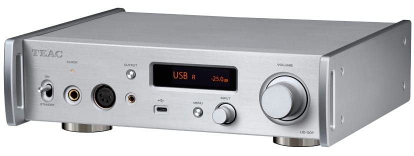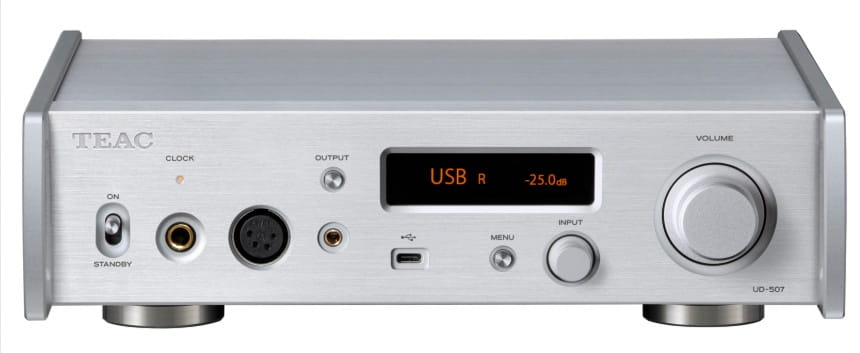 TEAC UD-507 to zaawansowany przetwornik cyfrowo-analogowy, przedwzmacniacz i wzmacniacz słuchawkowy w jednym. Wyposażony w autorski przetwornik TRDD5, zapewnia wyjątkową muzykalność i precyzyjne obrazowanie dźwięku. Obsługuje formaty DSD 22,5 MHz, PCM 384 kHz/32 bity oraz MQA. Posiada pięć wejść cyfrowych (USB Type-B, USB Type-C, koncentryczne, optyczne, Bluetooth) i dwa wejścia analogowe (RCA, XLR). Wzmacniacz słuchawkowy HCLD2 oferuje moc 1,2 W na zbalansowanym wyjściu.