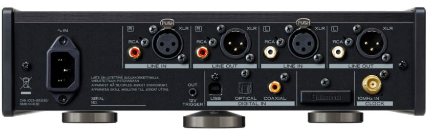 - Wejścia: 5 cyfrowych (USB Type-B, USB Type-C, koncentryczne, optyczne, Bluetooth), 2 analogowe (RCA, XLR)