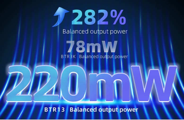 Niezależny system zasilania, o niskim poziomie szumów i o wysokim natężeniu wyjściowym, został zaprojektowany specjalnie dla wbudowanego wzmacniacza przetwornika cyfrowo-analogowego CS43131. Zwiększa to zbalansowaną moc wyjściową BTR13 o 282% - w porównaniu z BTR3K do 220 mW, dzięki czemu urządzenie z łatwością sprosta wszelkim potrzebom w zakresie przenośnego audio.