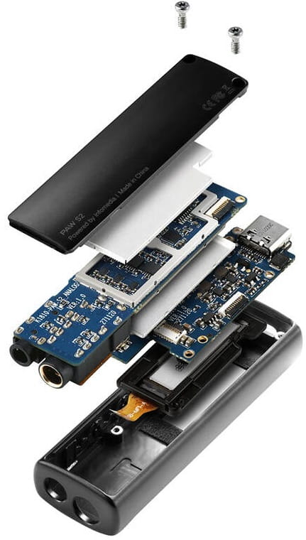 Lotoo PAW S2 oparto na układzie AK4377, który został tak zaimplementowany, aby wydobyć pełny potencjał z kości DAC firmy AKM (Asahi Kasei Microdevices). Gwarantuje on obsługę PCM do 32bit/384 kHz oraz wsparcie dla plików DSD do 128x. PAW S2 może pochwalić się dodatkowo wynikami pomiarów, które zbliżają się do wartości osiągniętych podczas testów laboratoryjnych układu DAC. PAW S2 na tle modelu PAW S1 wyróżnia się nową konstrukcją wewnętrzną, na którą składają się dwie specjalnie zaprojektowane 8-warstwowe płytki drukowane typu HDI (High Density Interconnector) PCB, które wyróżniają się większą liczbą połączeń niż standardowe rozwiązania. Inżynierowie Lotoo w PAW S2 zaadoptowali do tego układ DSD (Digital Signal Processor) z linii Blackfin firmy ADI. W obwodzie analogowym wykorzystano z kolei niskotemperaturowy rezystor metalizowany o niskim poziomie szumu, który gwarantuje wysoką precyzję.