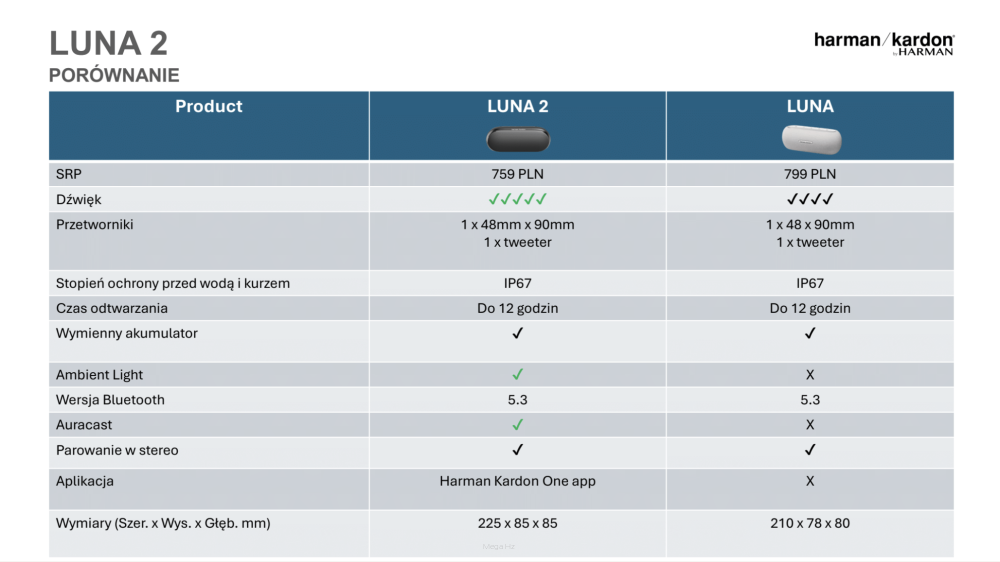 Zaawansowane sterowniki 2-drożnego systemu głośników Harman Kardon Luna zapewniają zbalansowany dźwięk wysokiej jakości. Kultowy dźwięk Harman Kardon sprawi, że Twoje ulubione piosenki będą brzmieć jak nowe.