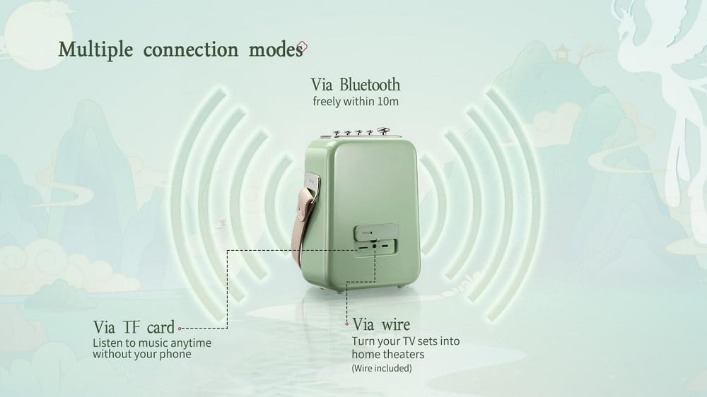 Oprócz łączności Bluetooth, SongBird ma również gniazdo audio 3,5 mm do połączeń przewodowych. Posiada również slot na kartę MicroSD, który umożliwia odtwarzanie muzyki bezpośrednio z karty pamięci. Do głośnika dołączony jest kabel USB do ładowania oraz instrukcja obsługi.
