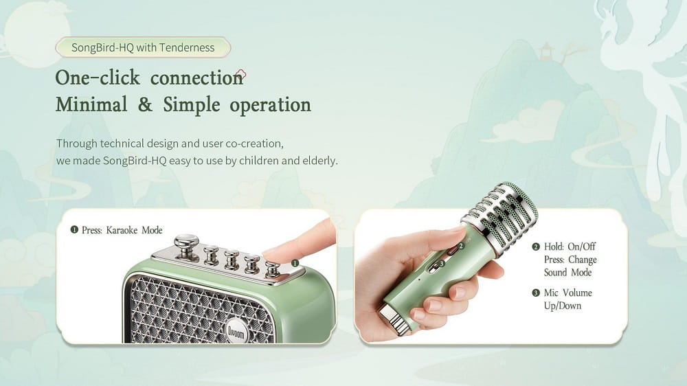 SongBird ma elegancki i nowoczesny wygląd z metalową maskownicą i gumowanym wykończeniem, które zapewnia wygodny chwyt. Jest dostępny w dwóch różnych kolorach: białym i zielonym. Głośnik jest również lekki i łatwy do przenoszenia, dzięki czemu idealnie nadaje się do zajęć na świeżym powietrzu, podróży lub po prostu do słuchania muzyki w domu.