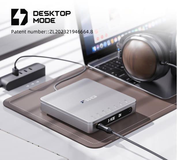 Wysoko ceniony tryb stacjonarny FIIO trafia do DM13. Po podłączeniu do źródła zasilania USB wystarczy przełączyć przełącznik D.MODE na „ON”, a DM13 będzie zasilany bezpośrednio przez USB bez zużywania energii z baterii, co przedłuży jej żywotność.