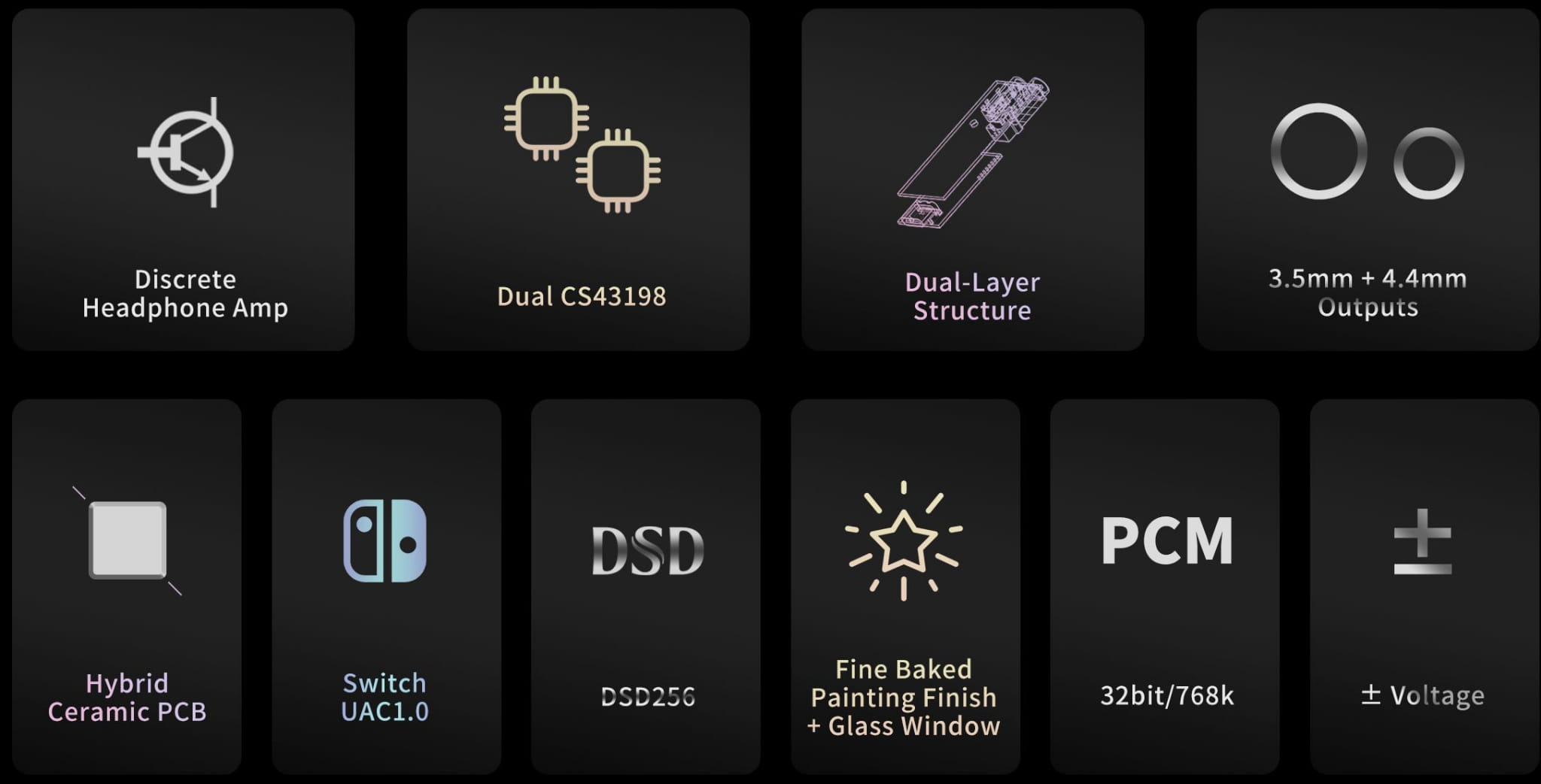Yuki oparty jest na dwóch układach CS43198, w więc flagowych kościach DAC firmy Cirrus Logic. Dzięki temu oba kanały obsługiwane są niezależnie, co przekłada się na wyższą dynamikę i lepszą separację. Świetna wydajność układów umożliwia obsługę plików PCM do 32-bit/768 kHz oraz DSD do 256x. Przenośny DAC/AMP aune audio świetnie sprawdza się w parze zarówno z komputerami, jak i smartfonami czy tabletami. Wyraźnie poprawia jakość dźwięku z każdego urządzenia, do którego jest podłączony.