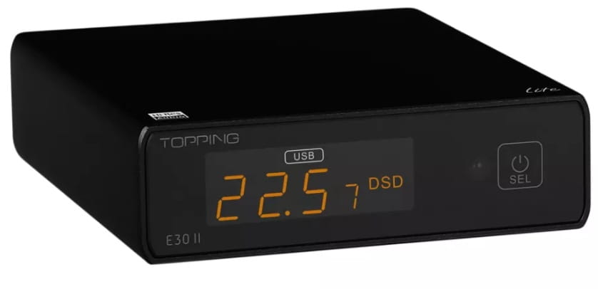 Wejście USB-B w modelu E30 II Lite sprawia, że korzystanie z przetwornika cyfrowo-analogowego jest proste i wydajne. Jest to połączone z interfejsem XMOS XU208 oraz wyjątkowo stabilnym i niezawodnym niestandardowym sterownikiem Thesycon. Ponadto wejście to zapewnia wyjątkowo niski poziom jittera. Połączenie tego interfejsu z przetwornikiem cyfrowo-analogowym AK4493S oznacza również, że E30 II Lite może obsługiwać strumienie audio o wysokiej rozdzielczości, do PCM 32-bitowy, 768 kHz i DSD512.