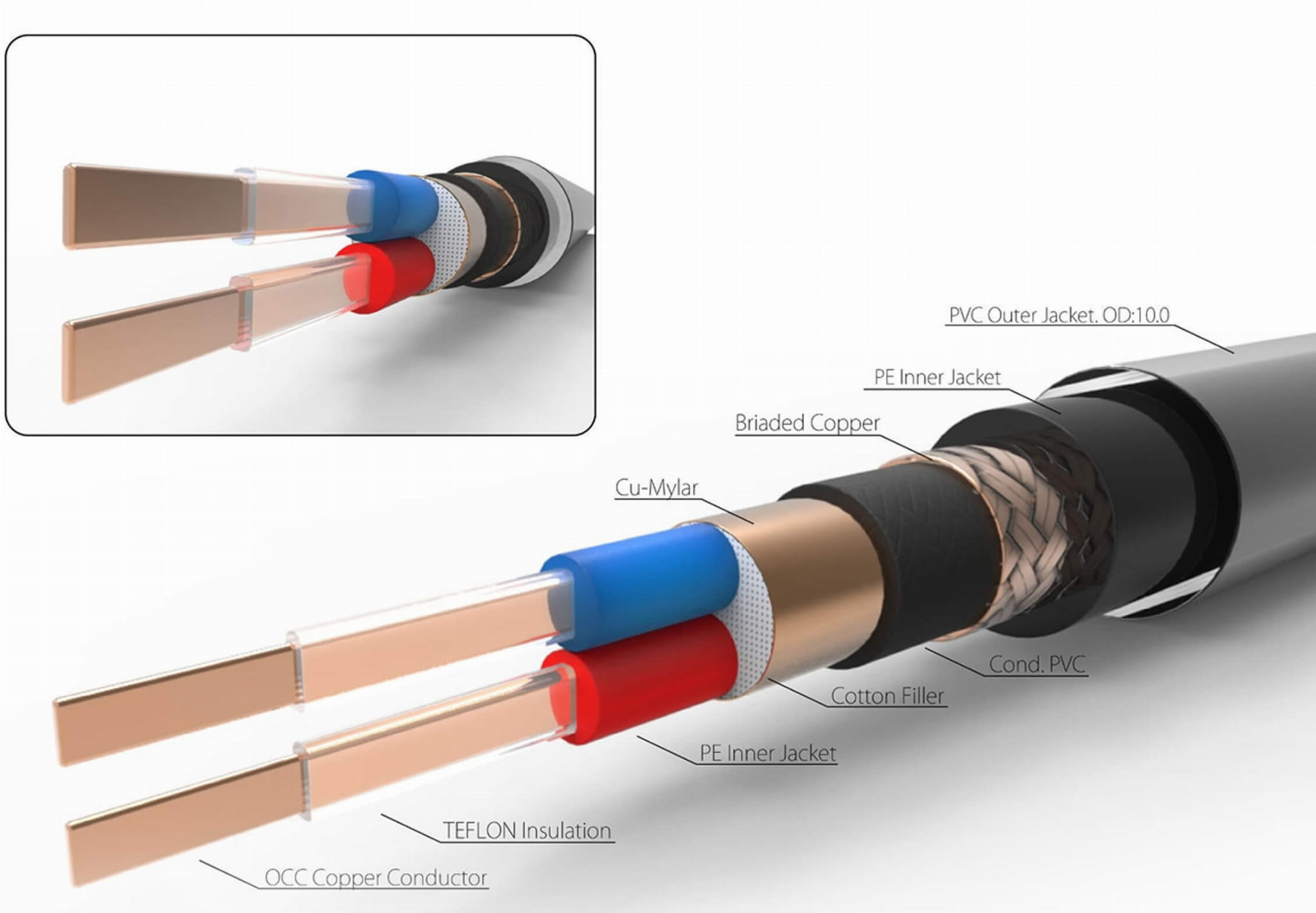 - przewodniki wykonane zostały z miedzi monokrystalicznej UP-OCC o przekroju prostokątnym