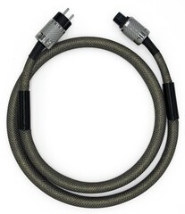 Ekskluzywny przewód zasilający klasy high-end, wykonany w technologii UP‐4VRC z ultraczystej monokrystalicznej miedzi (Ultra Pure Single Crystal Copper© – UP‐SCC 4VRC), wzbogaconej grafitem dla jeszcze skuteczniejszej eliminacji zakłóceń i strat sygnału. Wewnętrzna geometria skrętna (4 × 6,5 mm²) oraz zastosowanie izolacji XLPE zapewniają najwyższy poziom stabilności, przewodności i ekranowania. Zakończony najwyższej klasy złączami VIBORG pokrywanymi rodem, dostępny ze standardową wtyczką Schuko oraz – na życzenie – z gniazdami typu USA lub UK. Zewnętrzna średnica wynosi 20 mm, maksymalna pojemność: C1 – 90 pF/m, C2 – 170 pF/ m (z ekranem), indukcyjność: 0,5 µF/m, opór przewodnika: 2,5 Ω / 100 m. Idealny wybór do najbardziej wymagających systemów audio.